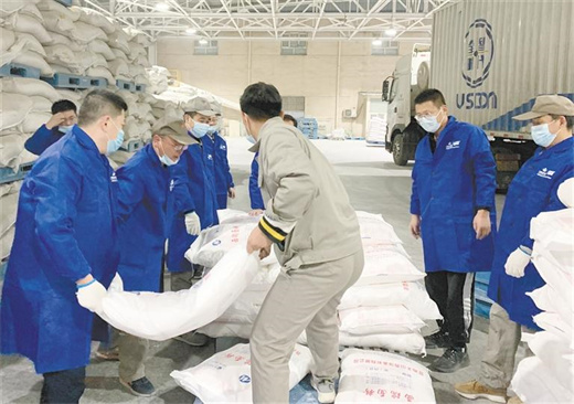 1月1日,隨著米面油訂單量持續(xù)增加,西瑞集團(tuán)干部職工在面粉車間幫助裝卸作業(yè)。