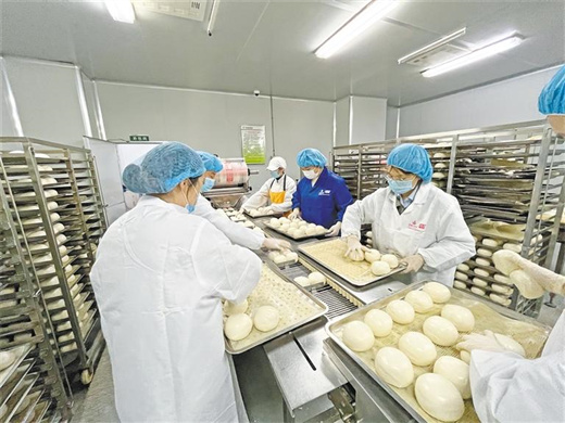 1月6日,西瑞集團(tuán)“巾幗隊(duì)”支援饅頭生產(chǎn)線。 本報(bào)通訊員 鐘曉甜攝
